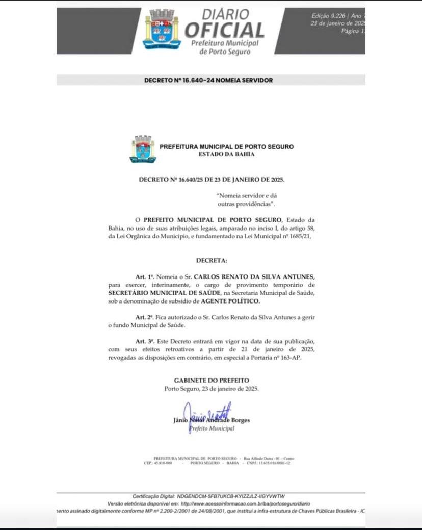 Isso porque a saúde pública municipal, após ter sido classificada pelo Programa Previne Brasil, do Governo Federal, como a pior saúde da Bahia, durante 3 anos consecutivos, só tendo melhorado um pouquinho durante o ano eleitoral de 2024, está de cara nova, com a nomeação do novo secretário Carlos Renato da Silva Antunes, popularmente conhecido como “Vaca”.